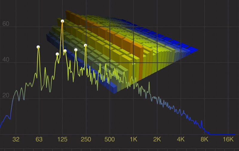 So how do we use this for exhaust resonance tuning? In a very clever way, that's how - we take a frequency analyzer along with us while driving in areas where the exhaust gets a little boomier than we prefer, and we measure that frequency at a given RPM, which shows us exactly what frequency we have to target. As we can see from this frequency analysis, our offending intelligent-mode 1800 RPM frequency is right around 122hz (the tall peak is on the graph to the right). Cancelling that will make a significant impact on the low rpm drone in the vehicle, and our helmholtz resonator can do that by generating an inverse frequency to the one we are trying to cancel.
